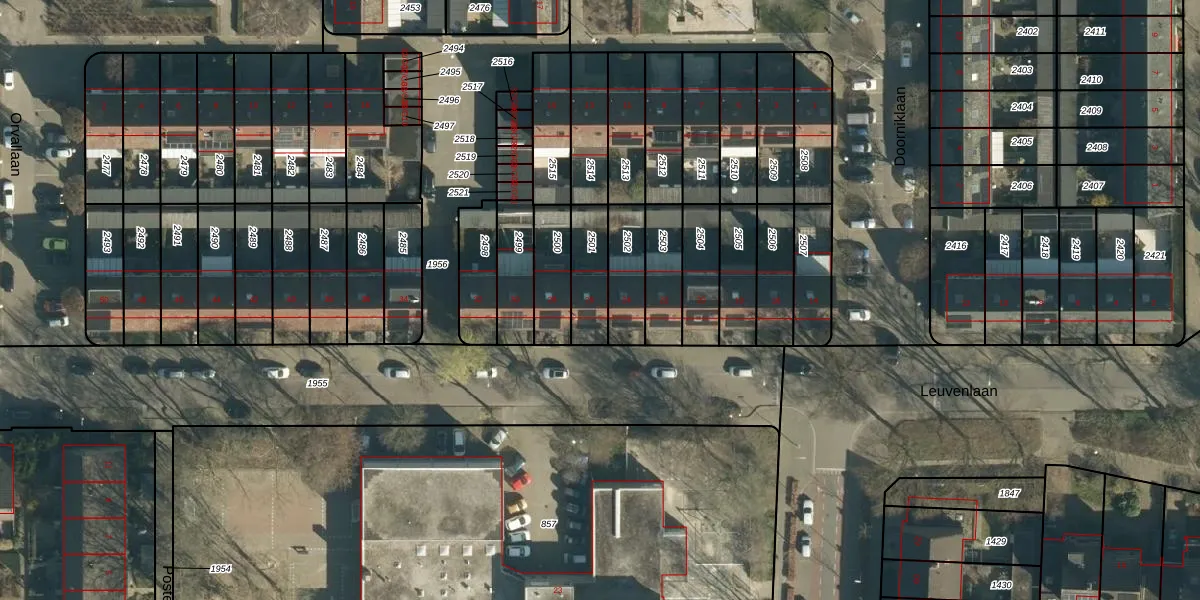 Leuvenlaan 26 is gelegen op kadastraal perceel WSL01M2501. Deze kadastrale aanduiding is uniek en wordt gebruikt door het Kadaster om eigendomsrechten en andere zakelijke rechten vast te leggen. Het perceel maakt onderdeel uit van de kadastrale gemeente Woensel.