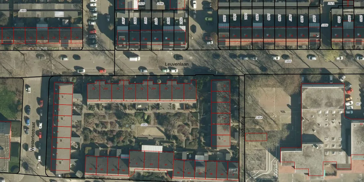 Leuvenlaan 27-A is gelegen op kadastraal perceel WSL01M1953. Deze kadastrale aanduiding is uniek en wordt gebruikt door het Kadaster om eigendomsrechten en andere zakelijke rechten vast te leggen. Het perceel maakt onderdeel uit van de kadastrale gemeente Woensel.