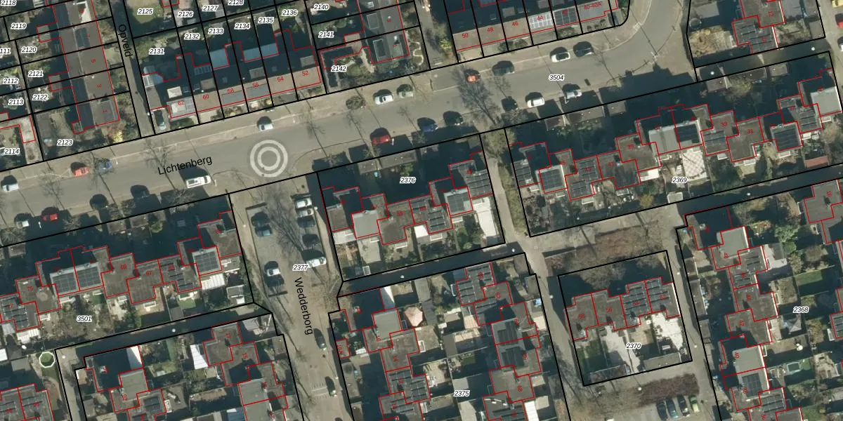 Het perceel waarop Lichtenberg 53 staat heeft een oppervlakte van 1050 m². Dit is een zeer groot perceel. De perceeloppervlakte wordt geregistreerd door het Kadaster. Gedetailleerde informatie over de maten van dit perceel kunt u vinden in het rapport Kadastrale kaart met maatvoering van Lichtenberg 53.