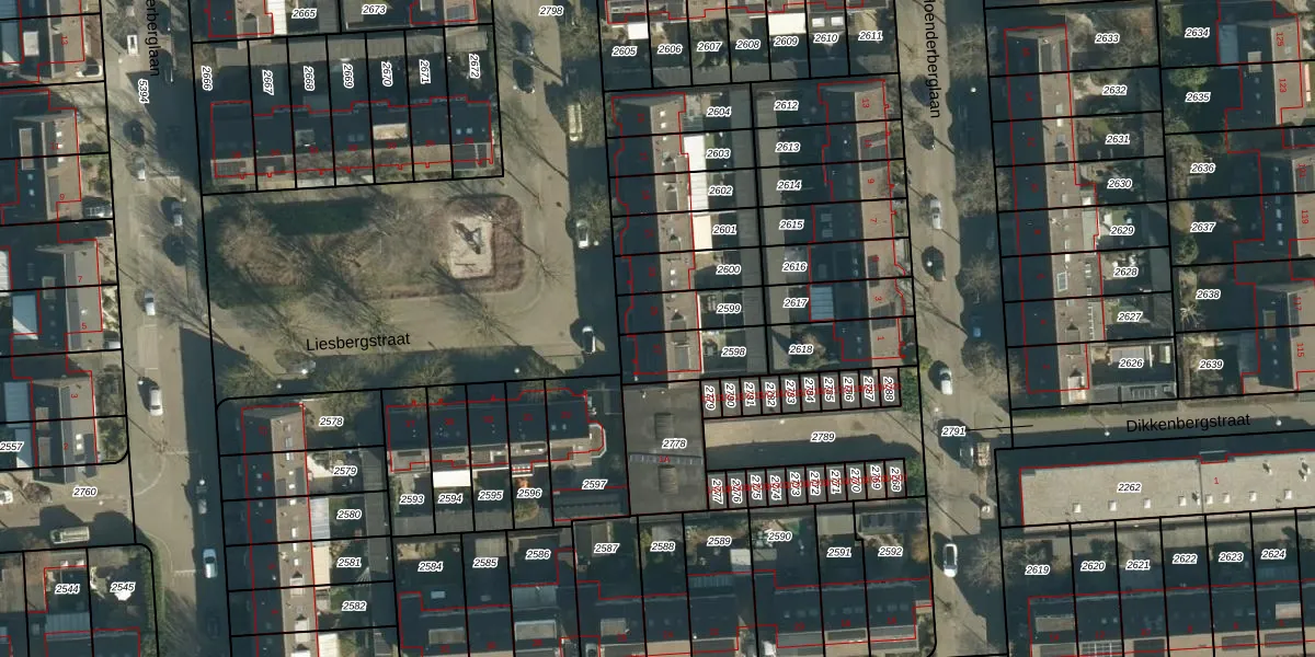 Liesbergstraat 25 is gelegen op kadastraal perceel WSL01W2599. Deze kadastrale aanduiding is uniek en wordt gebruikt door het Kadaster om eigendomsrechten en andere zakelijke rechten vast te leggen. Het perceel maakt onderdeel uit van de kadastrale gemeente Woensel.