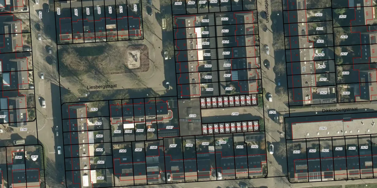 Liesbergstraat 27 is gelegen op kadastraal perceel WSL01W2598. Deze kadastrale aanduiding is uniek en wordt gebruikt door het Kadaster om eigendomsrechten en andere zakelijke rechten vast te leggen. Het perceel maakt onderdeel uit van de kadastrale gemeente Woensel.