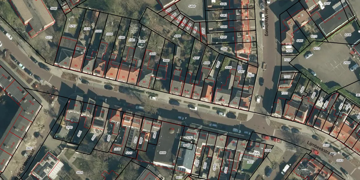 Het perceel waarop Lijmbeekstraat 101 staat heeft een oppervlakte van 529 m². Dit is een groot perceel. De perceeloppervlakte wordt geregistreerd door het Kadaster. Gedetailleerde informatie over de maten van dit perceel kunt u vinden in het rapport Kadastrale kaart met maatvoering van Lijmbeekstraat 101.