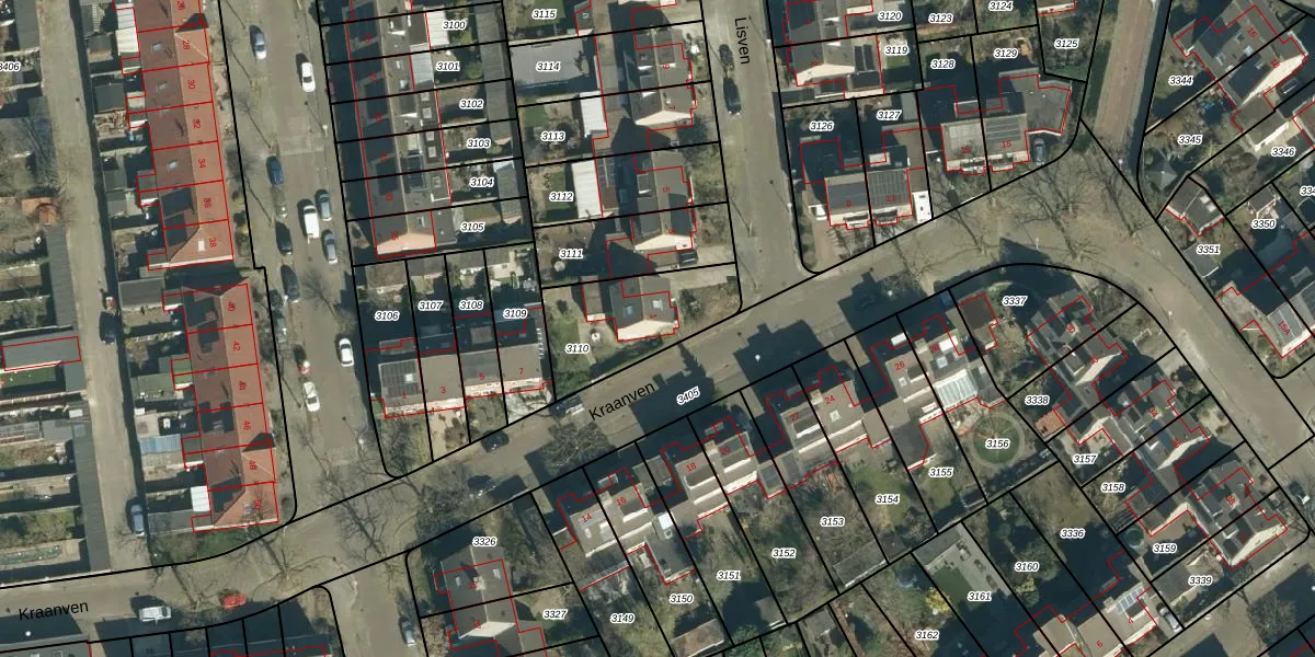 Het perceel waarop Lisven 1 staat heeft een oppervlakte van 373 m². Dit is een groot perceel. De perceeloppervlakte wordt geregistreerd door het Kadaster. Gedetailleerde informatie over de maten van dit perceel kunt u vinden in het rapport Kadastrale kaart met maatvoering van Lisven 1.