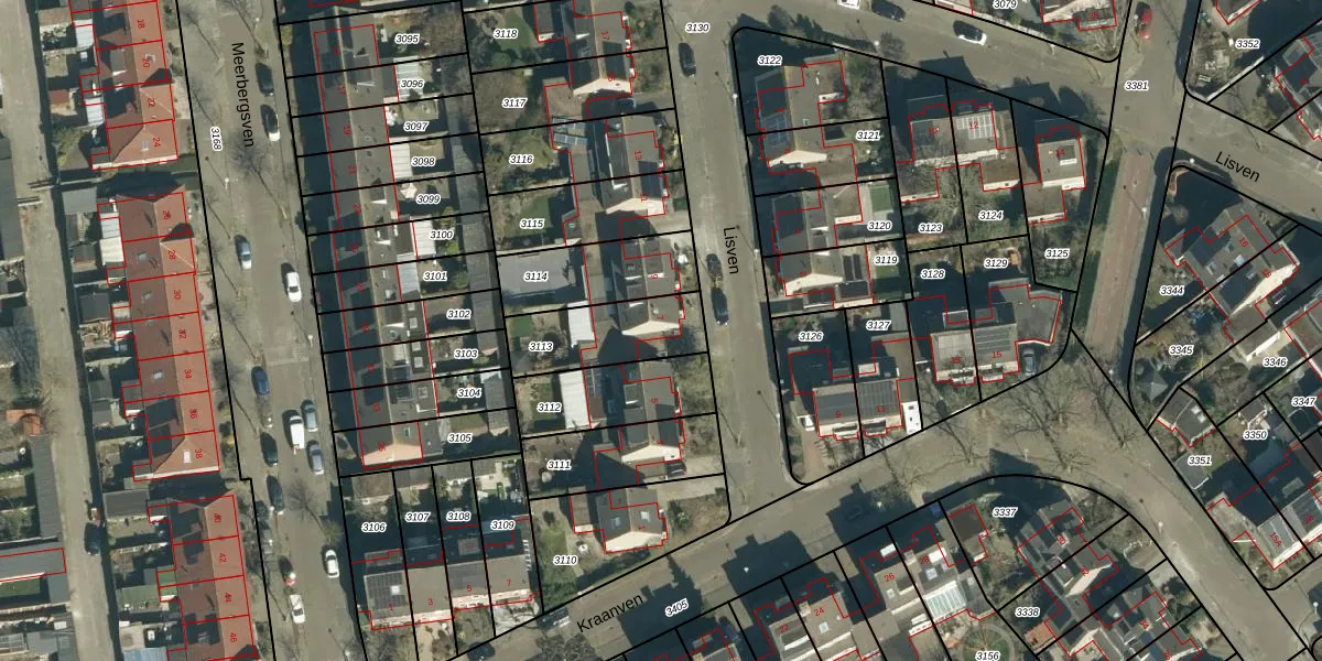 Gebruik de zoekbalk of klik op een perceel voor informatie over de adressen binnen dit perceel.