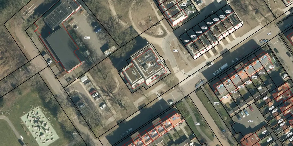 Lochemstraat 92 is gelegen op kadastraal perceel STR03C6502. Deze kadastrale aanduiding is uniek en wordt gebruikt door het Kadaster om eigendomsrechten en andere zakelijke rechten vast te leggen. Het perceel maakt onderdeel uit van de kadastrale gemeente Strijp.