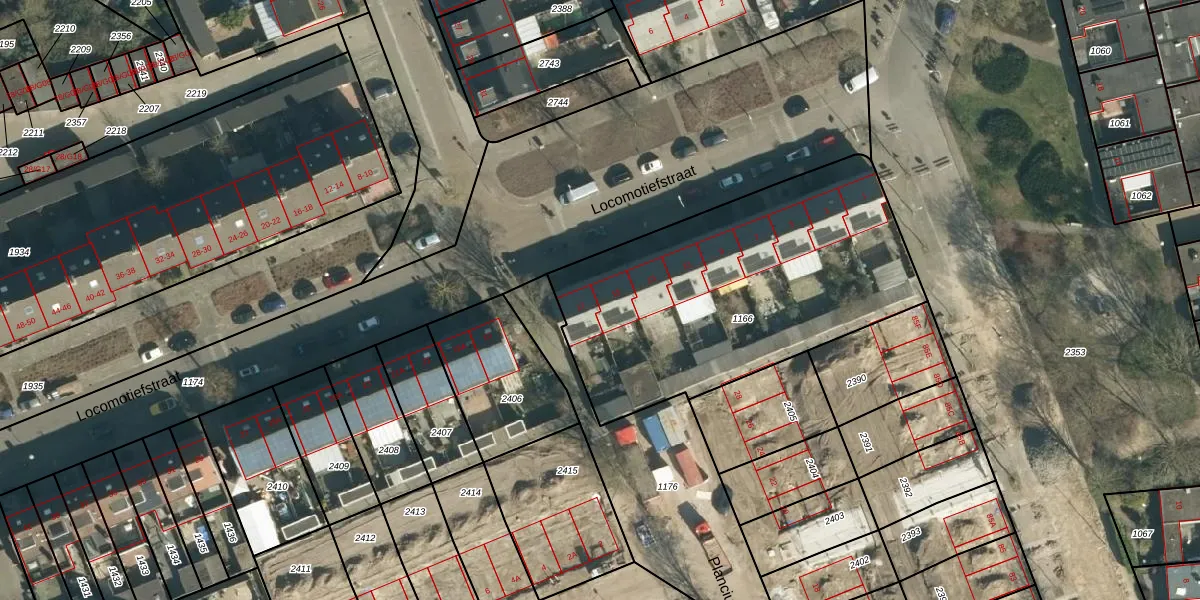 Het perceel waarop Locomotiefstraat 15 staat heeft een oppervlakte van 1572 m². Dit is een zeer groot perceel. De perceeloppervlakte wordt geregistreerd door het Kadaster. Gedetailleerde informatie over de maten van dit perceel kunt u vinden in het rapport Kadastrale kaart met maatvoering van Locomotiefstraat 15.