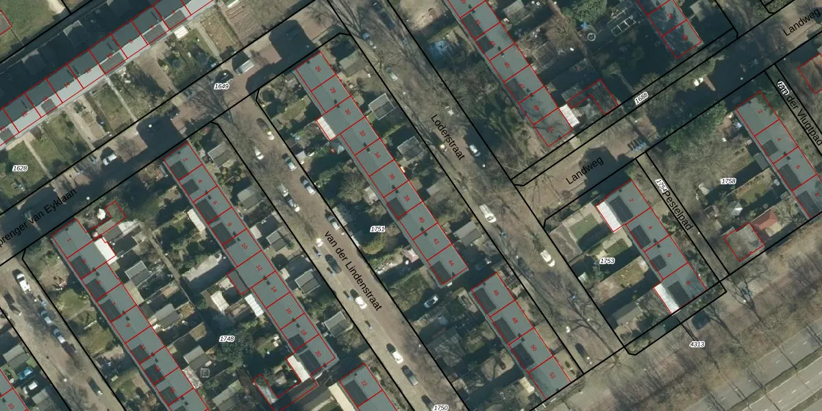 Loderstraat 38 is gelegen op kadastraal perceel STR03C1751. Deze kadastrale aanduiding is uniek en wordt gebruikt door het Kadaster om eigendomsrechten en andere zakelijke rechten vast te leggen. Het perceel maakt onderdeel uit van de kadastrale gemeente Strijp.