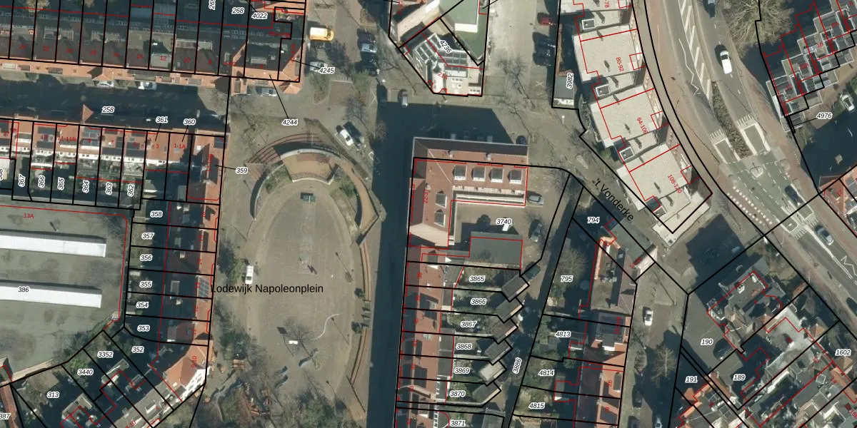 Het perceel waarop Lodewijk Napoleonplein 29 staat heeft een oppervlakte van 805 m². Dit is een groot perceel. De perceeloppervlakte wordt geregistreerd door het Kadaster. Gedetailleerde informatie over de maten van dit perceel kunt u vinden in het rapport Kadastrale kaart met maatvoering van Lodewijk Napoleonplein 29.