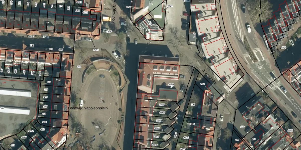 Het perceel waarop Lodewijk Napoleonplein 32 staat heeft een oppervlakte van 805 m². Dit is een groot perceel. De perceeloppervlakte wordt geregistreerd door het Kadaster. Gedetailleerde informatie over de maten van dit perceel kunt u vinden in het rapport Kadastrale kaart met maatvoering van Lodewijk Napoleonplein 32.