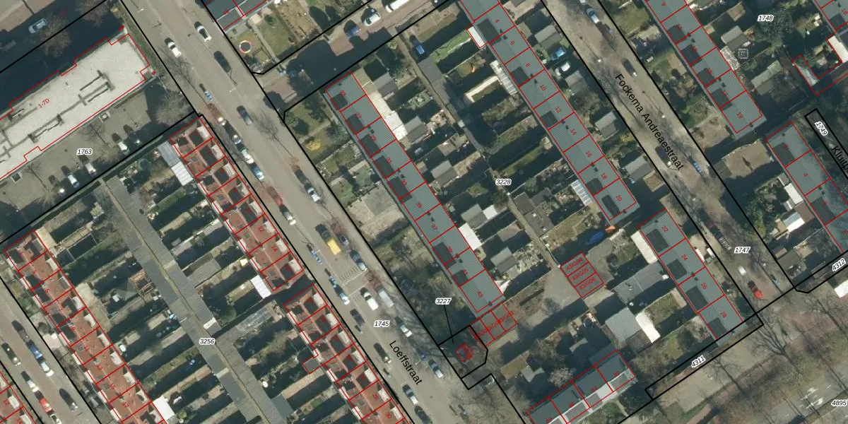 Het perceel waarop Loeffstraat 35 staat heeft een oppervlakte van 6621 m². Dit is een zeer groot perceel. De perceeloppervlakte wordt geregistreerd door het Kadaster. Gedetailleerde informatie over de maten van dit perceel kunt u vinden in het rapport Kadastrale kaart met maatvoering van Loeffstraat 35.
