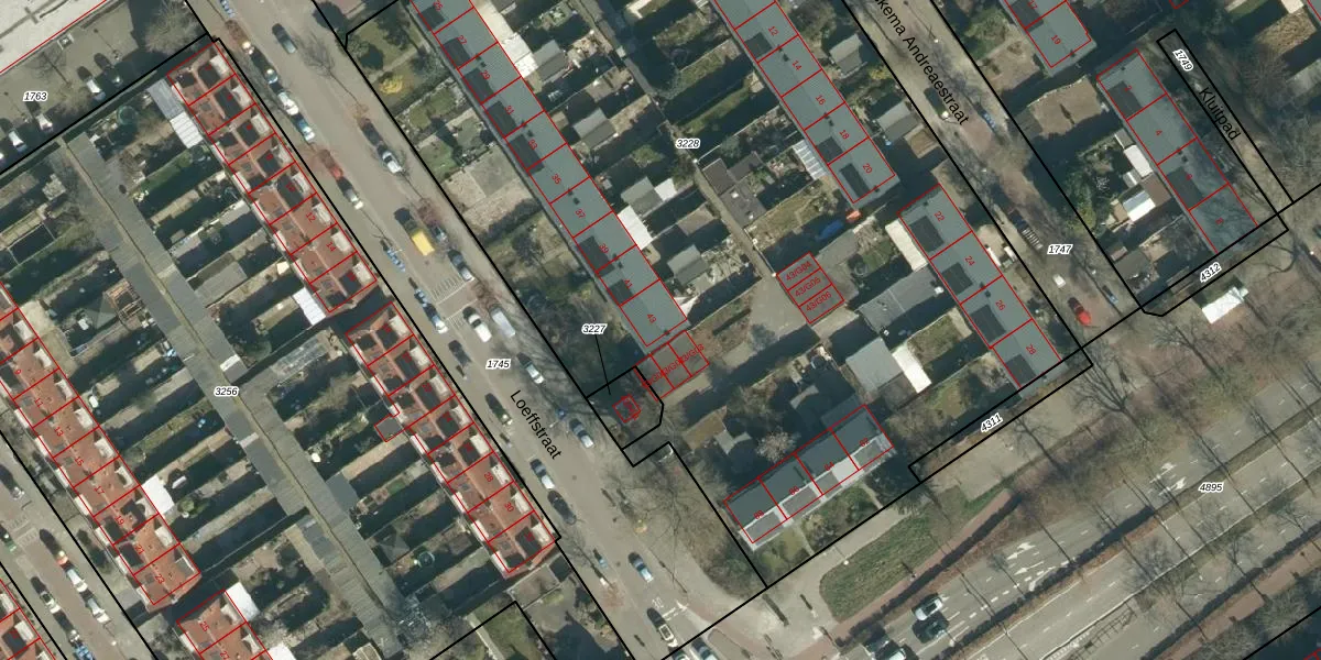 Het perceel waarop Loeffstraat 43 staat heeft een oppervlakte van 6621 m². Dit is een zeer groot perceel. De perceeloppervlakte wordt geregistreerd door het Kadaster. Gedetailleerde informatie over de maten van dit perceel kunt u vinden in het rapport Kadastrale kaart met maatvoering van Loeffstraat 43.