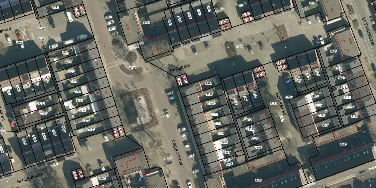 Gebruik de zoekbalk of klik op een perceel voor informatie over de adressen binnen dit perceel.