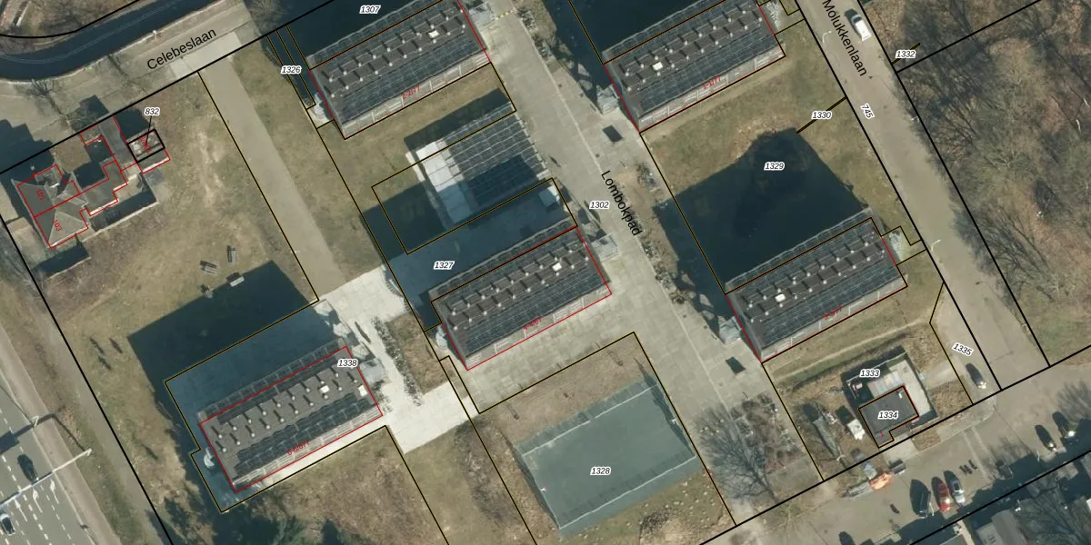 Het perceel waarop Lombokpad 4-30 staat heeft een oppervlakte van 4688 m². Dit is een zeer groot perceel. De perceeloppervlakte wordt geregistreerd door het Kadaster. Gedetailleerde informatie over de maten van dit perceel kunt u vinden in het rapport Kadastrale kaart met maatvoering van Lombokpad 4-30.
