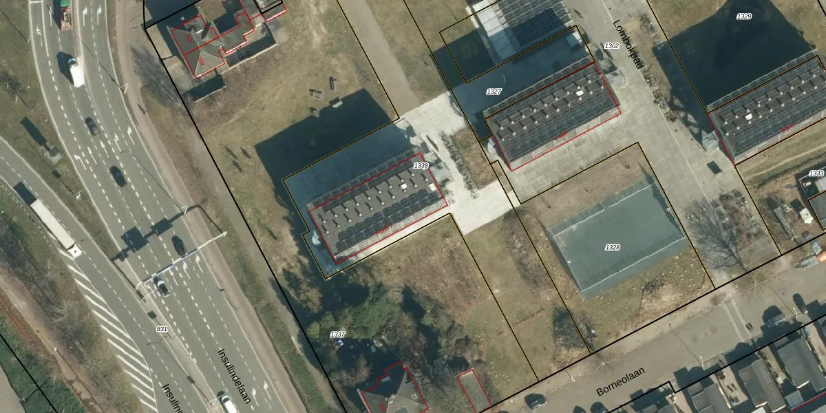 Het perceel waarop Lombokpad 6-02 staat heeft een oppervlakte van 2565 m². Dit is een zeer groot perceel. De perceeloppervlakte wordt geregistreerd door het Kadaster. Gedetailleerde informatie over de maten van dit perceel kunt u vinden in het rapport Kadastrale kaart met maatvoering van Lombokpad 6-02.
