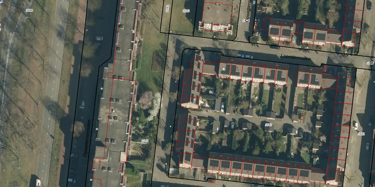 Het perceel waarop Loondermolen 23 staat heeft een oppervlakte van 6280 m². Dit is een zeer groot perceel. De perceeloppervlakte wordt geregistreerd door het Kadaster. Gedetailleerde informatie over de maten van dit perceel kunt u vinden in het rapport Kadastrale kaart met maatvoering van Loondermolen 23.