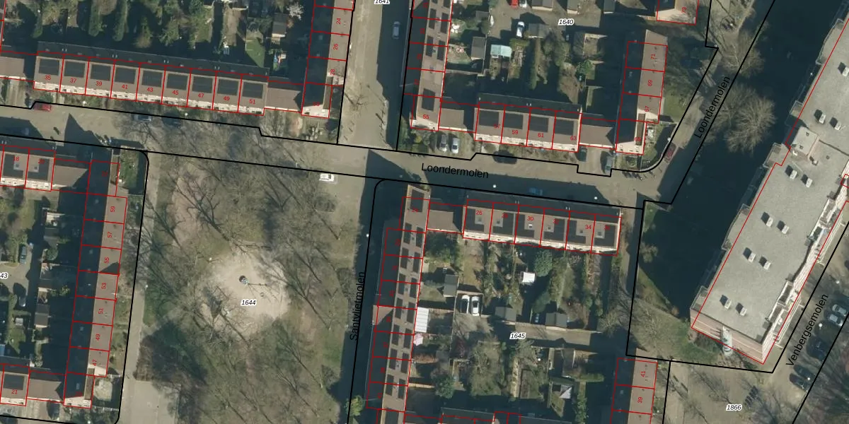Het perceel waarop Loondermolen 24 staat heeft een oppervlakte van 4494 m². Dit is een zeer groot perceel. De perceeloppervlakte wordt geregistreerd door het Kadaster. Gedetailleerde informatie over de maten van dit perceel kunt u vinden in het rapport Kadastrale kaart met maatvoering van Loondermolen 24.