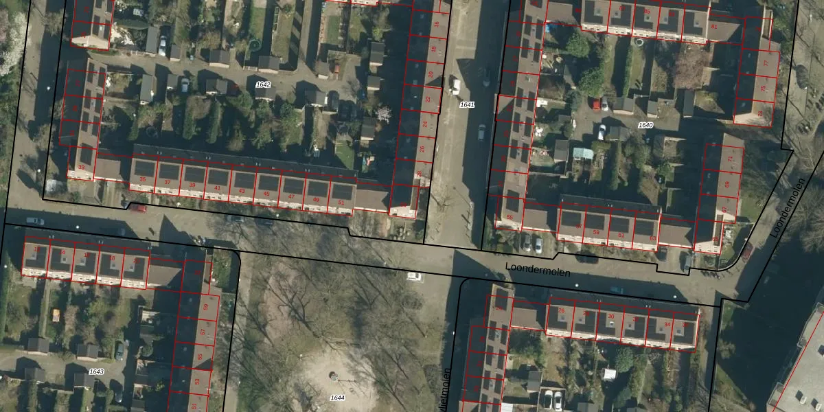 Loondermolen 53 is gelegen op kadastraal perceel WSL01K1642. Deze kadastrale aanduiding is uniek en wordt gebruikt door het Kadaster om eigendomsrechten en andere zakelijke rechten vast te leggen. Het perceel maakt onderdeel uit van de kadastrale gemeente Woensel.