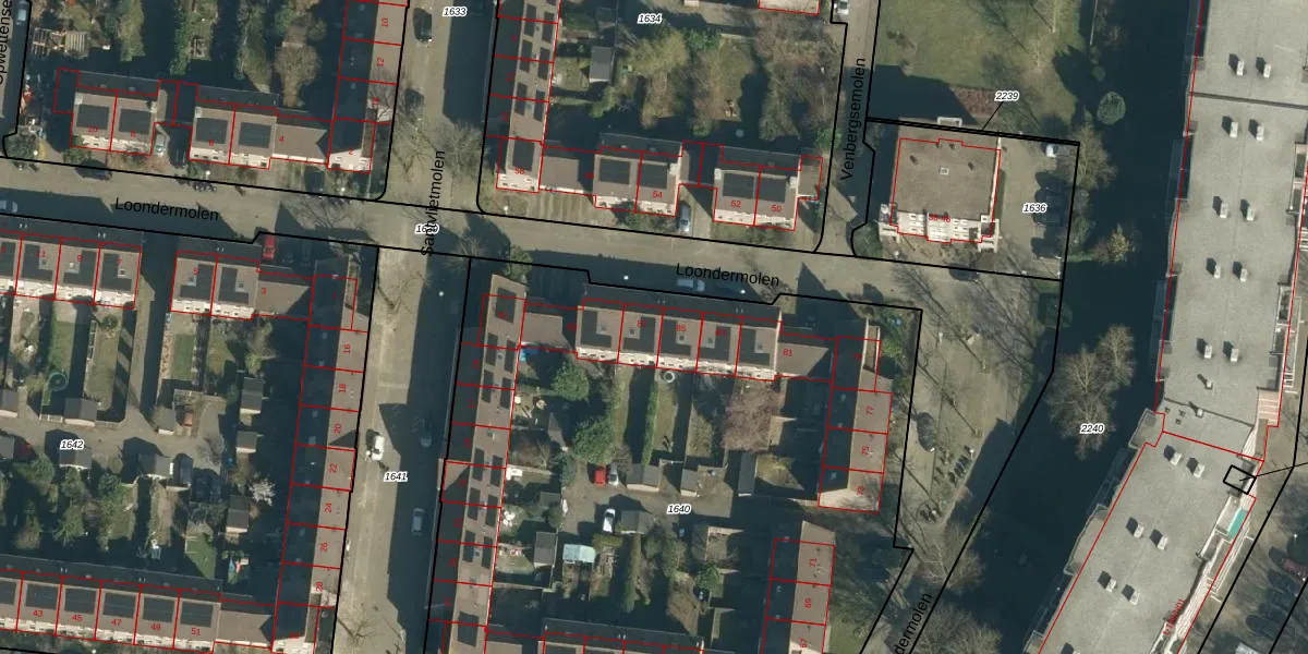 Het perceel waarop Loondermolen 87 staat heeft een oppervlakte van 4611 m². Dit is een zeer groot perceel. De perceeloppervlakte wordt geregistreerd door het Kadaster. Gedetailleerde informatie over de maten van dit perceel kunt u vinden in het rapport Kadastrale kaart met maatvoering van Loondermolen 87.