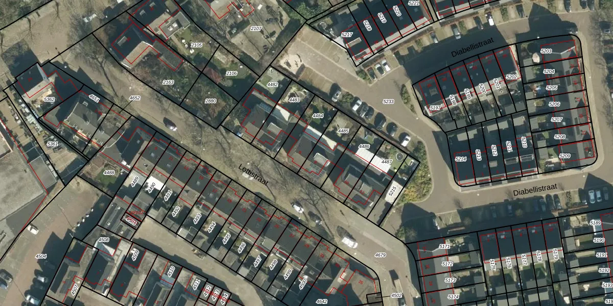 Het perceel waarop Lottistraat 6 staat heeft een oppervlakte van 225 m². Dit is een middelgroot perceel. De perceeloppervlakte wordt geregistreerd door het Kadaster. Gedetailleerde informatie over de maten van dit perceel kunt u vinden in het rapport Kadastrale kaart met maatvoering van Lottistraat 6.