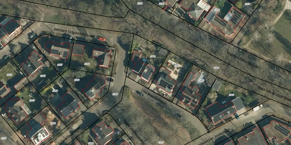 Het perceel waarop Lou Maertenslaan 6 staat heeft een oppervlakte van 659 m². Dit is een groot perceel. De perceeloppervlakte wordt geregistreerd door het Kadaster. Gedetailleerde informatie over de maten van dit perceel kunt u vinden in het rapport Kadastrale kaart met maatvoering van Lou Maertenslaan 6.