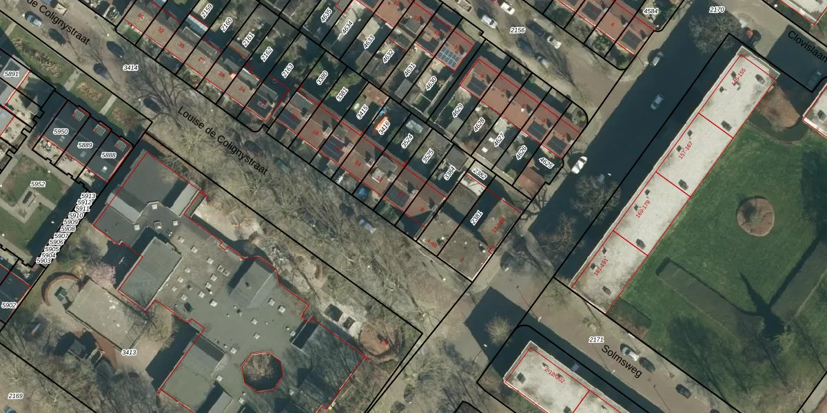 Het perceel waarop Louise de Colignystraat 8 staat heeft een oppervlakte van 159 m². Dit is een middelgroot perceel. De perceeloppervlakte wordt geregistreerd door het Kadaster. Gedetailleerde informatie over de maten van dit perceel kunt u vinden in het rapport Kadastrale kaart met maatvoering van Louise de Colignystraat 8.