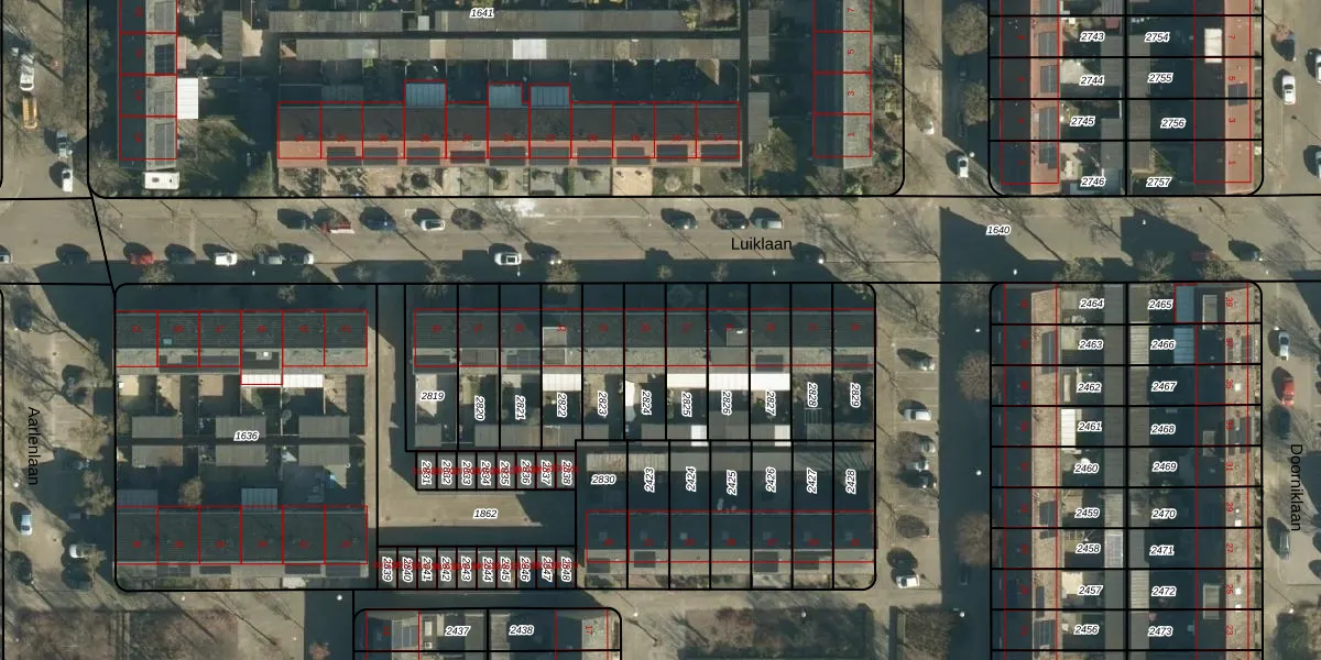 Gebruik de zoekbalk of klik op een perceel voor informatie over de adressen binnen dit perceel.