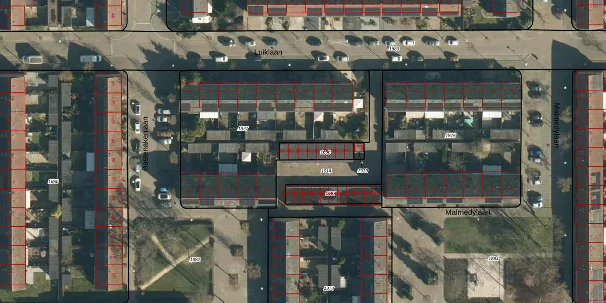 Luiklaan 65-G14 is gelegen op kadastraal perceel WSL01M1666. Deze kadastrale aanduiding is uniek en wordt gebruikt door het Kadaster om eigendomsrechten en andere zakelijke rechten vast te leggen. Het perceel maakt onderdeel uit van de kadastrale gemeente Woensel.