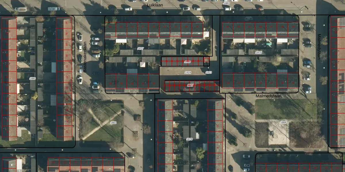 Luiklaan 65-G10 is gelegen op kadastraal perceel WSL01M1667. Deze kadastrale aanduiding is uniek en wordt gebruikt door het Kadaster om eigendomsrechten en andere zakelijke rechten vast te leggen. Het perceel maakt onderdeel uit van de kadastrale gemeente Woensel.