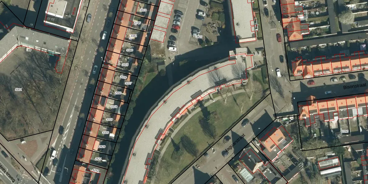 Het perceel waarop Luipaardstraat 174 staat heeft een oppervlakte van 1,0 ha. Dit is een zeer groot perceel. De perceeloppervlakte wordt geregistreerd door het Kadaster. Gedetailleerde informatie over de maten van dit perceel kunt u vinden in het rapport Kadastrale kaart met maatvoering van Luipaardstraat 174.