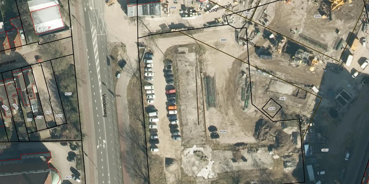 Het perceel waarop Lumenstraat 4-22 staat heeft een oppervlakte van 6917 m². Dit is een zeer groot perceel. De perceeloppervlakte wordt geregistreerd door het Kadaster. Gedetailleerde informatie over de maten van dit perceel kunt u vinden in het rapport Kadastrale kaart met maatvoering van Lumenstraat 4-22.