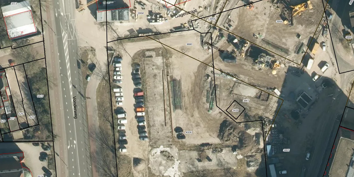 Het perceel waarop Lumenstraat 4-34 staat heeft een oppervlakte van 6917 m². Dit is een zeer groot perceel. De perceeloppervlakte wordt geregistreerd door het Kadaster. Gedetailleerde informatie over de maten van dit perceel kunt u vinden in het rapport Kadastrale kaart met maatvoering van Lumenstraat 4-34.