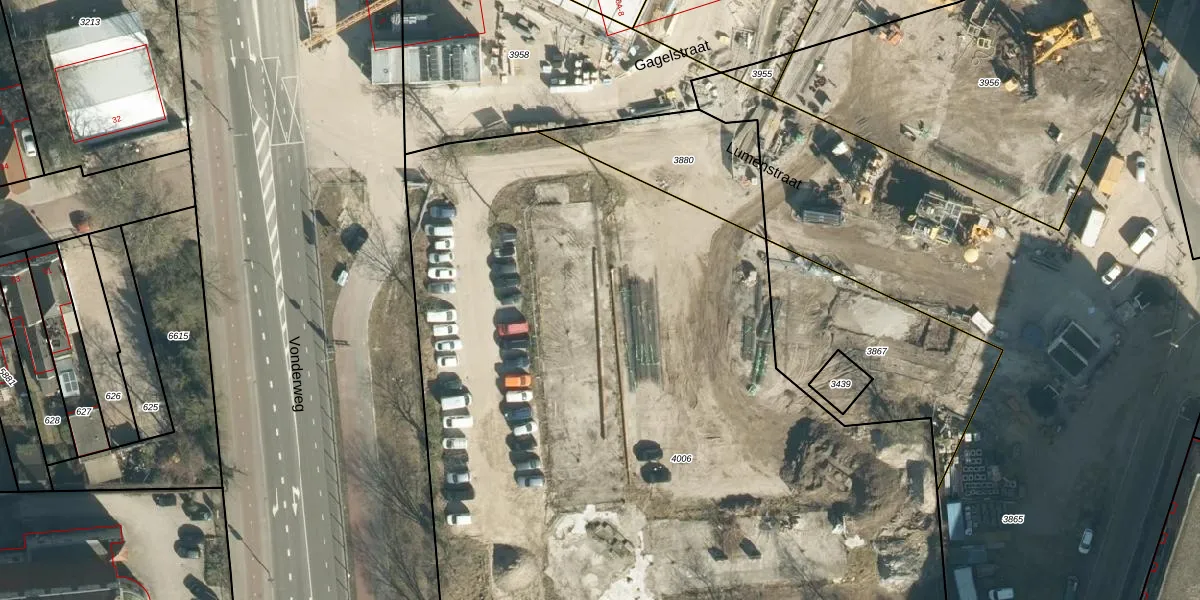 Het perceel waarop Lumenstraat 4-49 staat heeft een oppervlakte van 6917 m². Dit is een zeer groot perceel. De perceeloppervlakte wordt geregistreerd door het Kadaster. Gedetailleerde informatie over de maten van dit perceel kunt u vinden in het rapport Kadastrale kaart met maatvoering van Lumenstraat 4-49.
