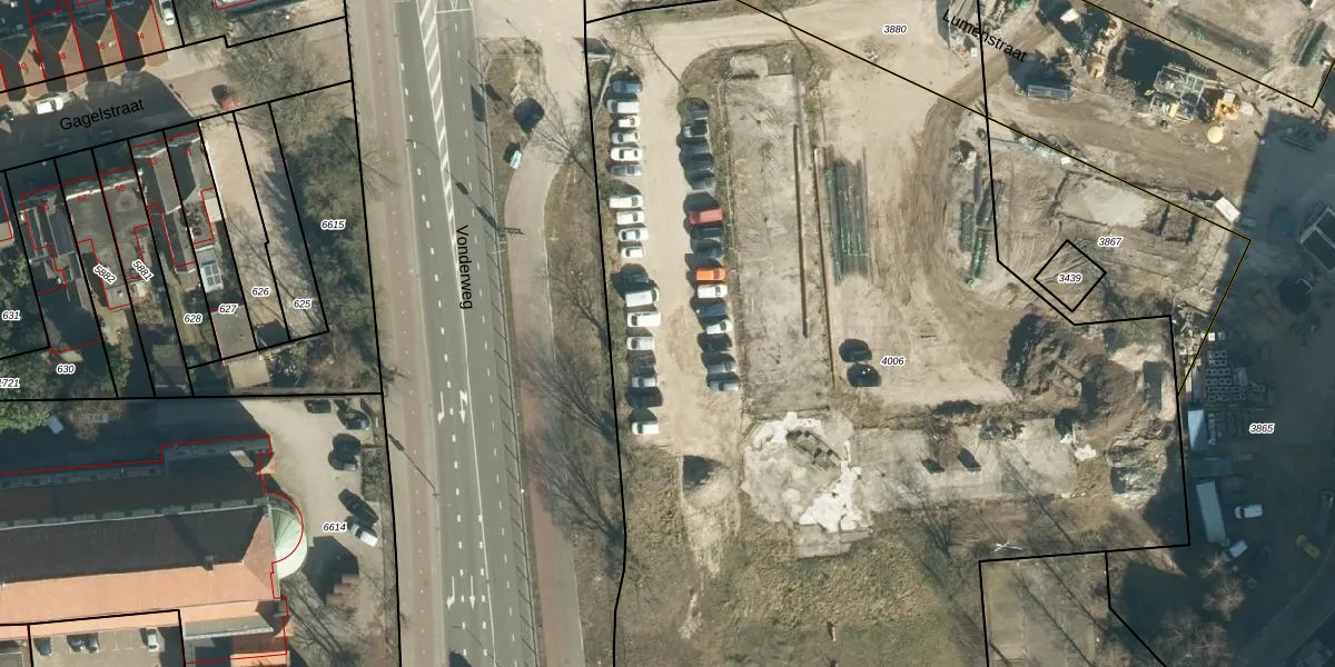 Het perceel waarop Lumenstraat 6-262 staat heeft een oppervlakte van 6917 m². Dit is een zeer groot perceel. De perceeloppervlakte wordt geregistreerd door het Kadaster. Gedetailleerde informatie over de maten van dit perceel kunt u vinden in het rapport Kadastrale kaart met maatvoering van Lumenstraat 6-262.