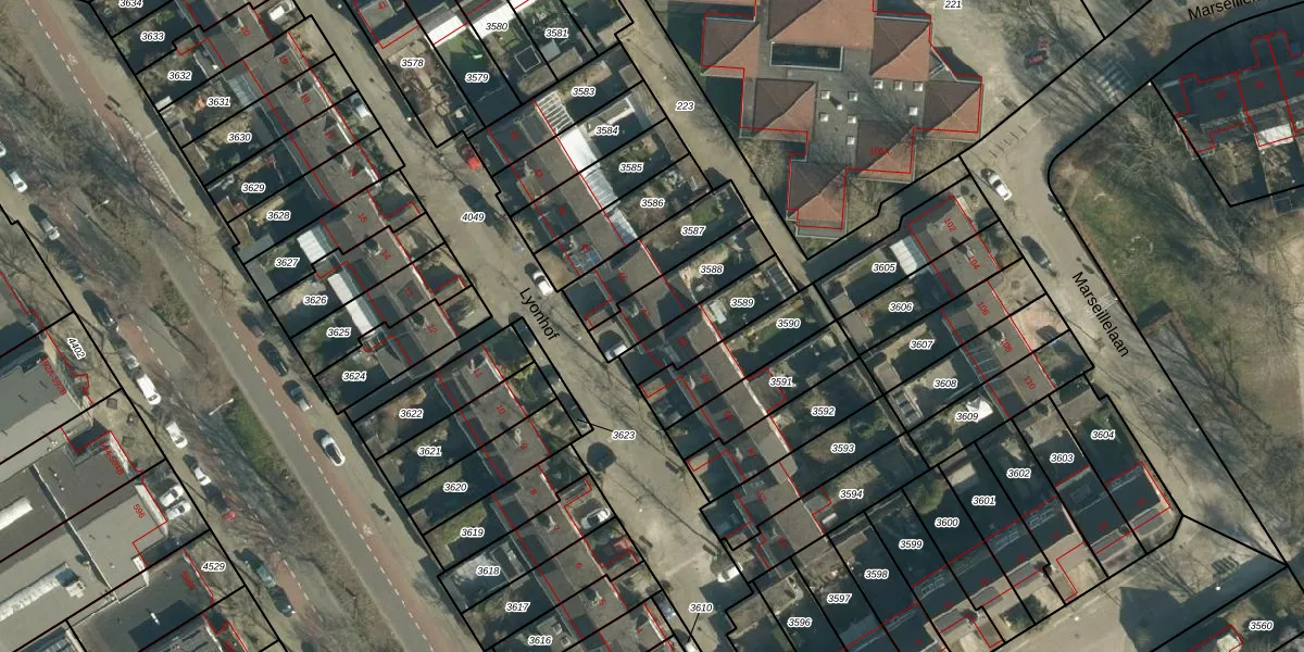 Lyonhof 47 is gelegen op kadastraal perceel WSL01S3588. Deze kadastrale aanduiding is uniek en wordt gebruikt door het Kadaster om eigendomsrechten en andere zakelijke rechten vast te leggen. Het perceel maakt onderdeel uit van de kadastrale gemeente Woensel.