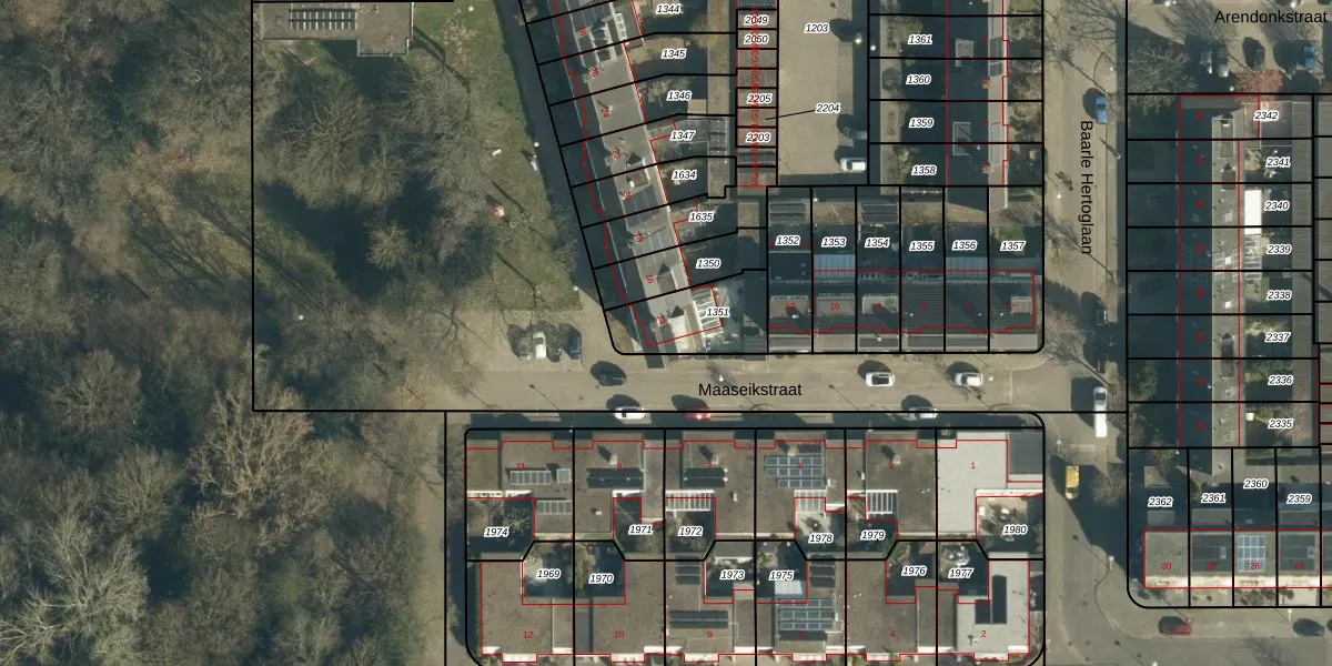 Het perceel waarop Maaseikstraat 14 staat heeft een oppervlakte van 228 m². Dit is een middelgroot perceel. De perceeloppervlakte wordt geregistreerd door het Kadaster. Gedetailleerde informatie over de maten van dit perceel kunt u vinden in het rapport Kadastrale kaart met maatvoering van Maaseikstraat 14.