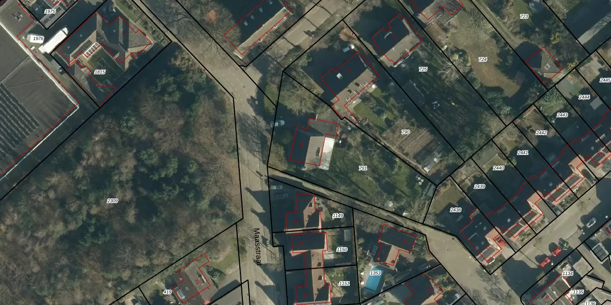Het perceel waarop Maasstraat 39 staat heeft een oppervlakte van 1244 m². Dit is een zeer groot perceel. De perceeloppervlakte wordt geregistreerd door het Kadaster. Gedetailleerde informatie over de maten van dit perceel kunt u vinden in het rapport Kadastrale kaart met maatvoering van Maasstraat 39.