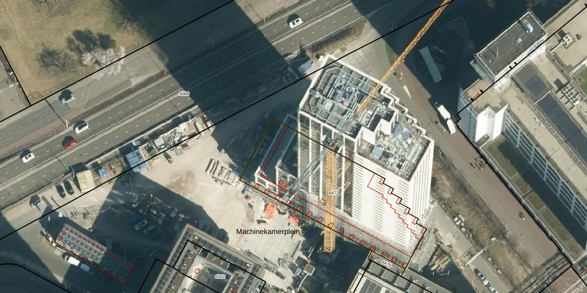 Machinekamerplein 32-106 is gelegen op kadastraal perceel STR03C6477. Deze kadastrale aanduiding is uniek en wordt gebruikt door het Kadaster om eigendomsrechten en andere zakelijke rechten vast te leggen. Het perceel maakt onderdeel uit van de kadastrale gemeente Strijp.