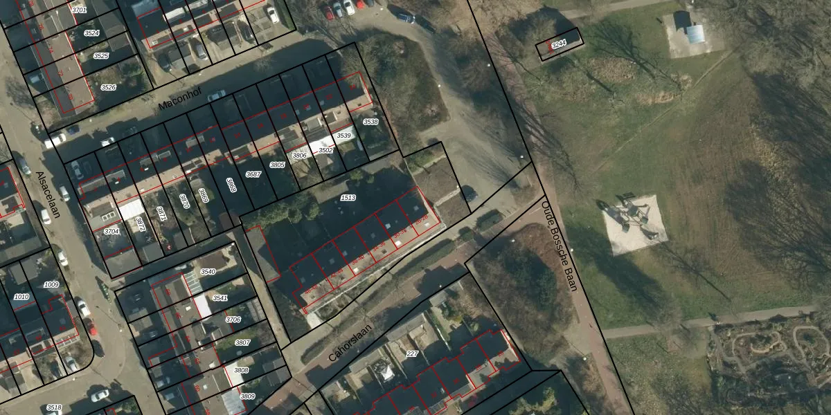 Het perceel waarop Maconhof 28 staat heeft een oppervlakte van 1373 m². Dit is een zeer groot perceel. De perceeloppervlakte wordt geregistreerd door het Kadaster. Gedetailleerde informatie over de maten van dit perceel kunt u vinden in het rapport Kadastrale kaart met maatvoering van Maconhof 28.