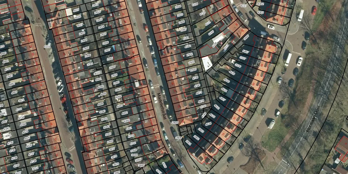 Het perceel waarop Madeliefstraat 45 staat heeft een oppervlakte van 96 m². Dit is een klein perceel. De perceeloppervlakte wordt geregistreerd door het Kadaster. Gedetailleerde informatie over de maten van dit perceel kunt u vinden in het rapport Kadastrale kaart met maatvoering van Madeliefstraat 45.