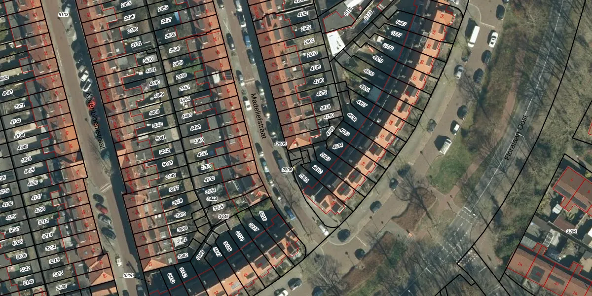 Het perceel waarop Madeliefstraat 55 staat heeft een oppervlakte van 88 m². Dit is een klein perceel. De perceeloppervlakte wordt geregistreerd door het Kadaster. Gedetailleerde informatie over de maten van dit perceel kunt u vinden in het rapport Kadastrale kaart met maatvoering van Madeliefstraat 55.