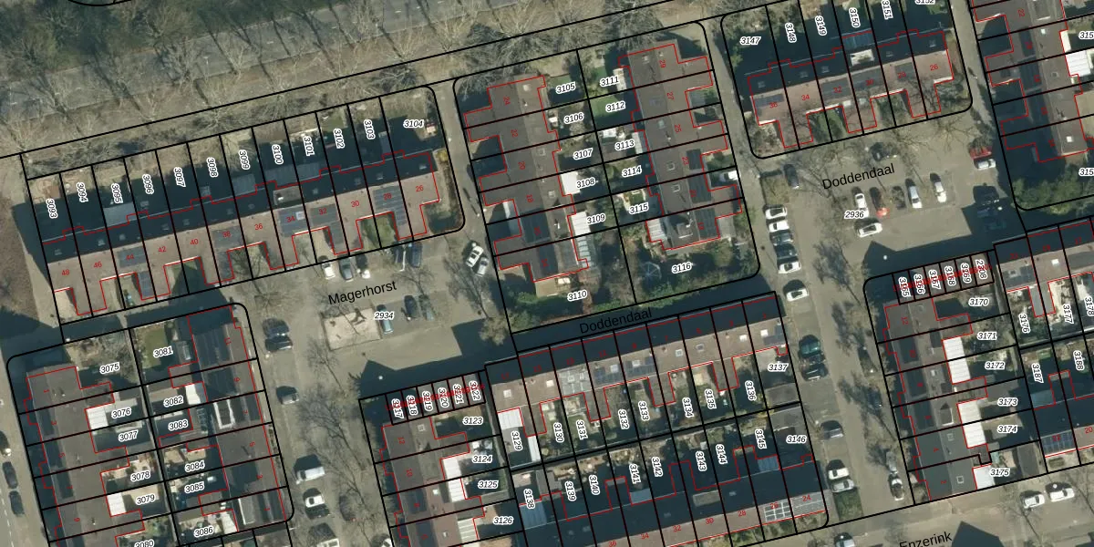 Gebruik de zoekbalk of klik op een perceel voor informatie over de adressen binnen dit perceel.