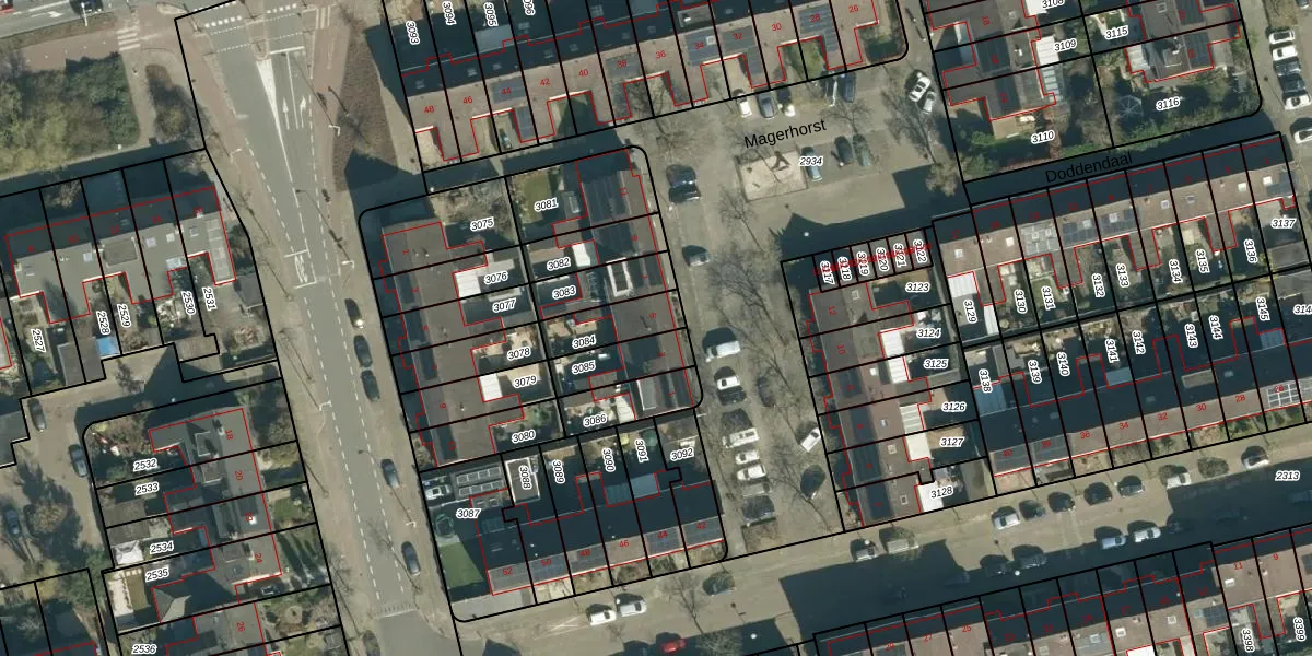 Gebruik de zoekbalk of klik op een perceel voor informatie over de adressen binnen dit perceel.