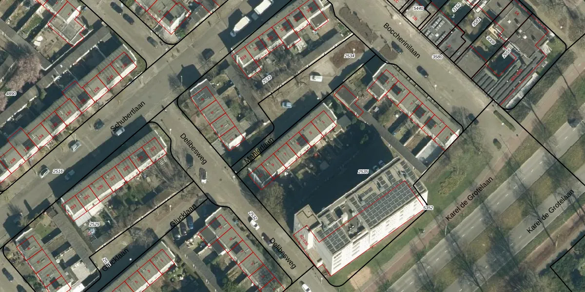 Het perceel waarop Mahlerlaan 5 staat heeft een oppervlakte van 3230 m². Dit is een zeer groot perceel. De perceeloppervlakte wordt geregistreerd door het Kadaster. Gedetailleerde informatie over de maten van dit perceel kunt u vinden in het rapport Kadastrale kaart met maatvoering van Mahlerlaan 5.