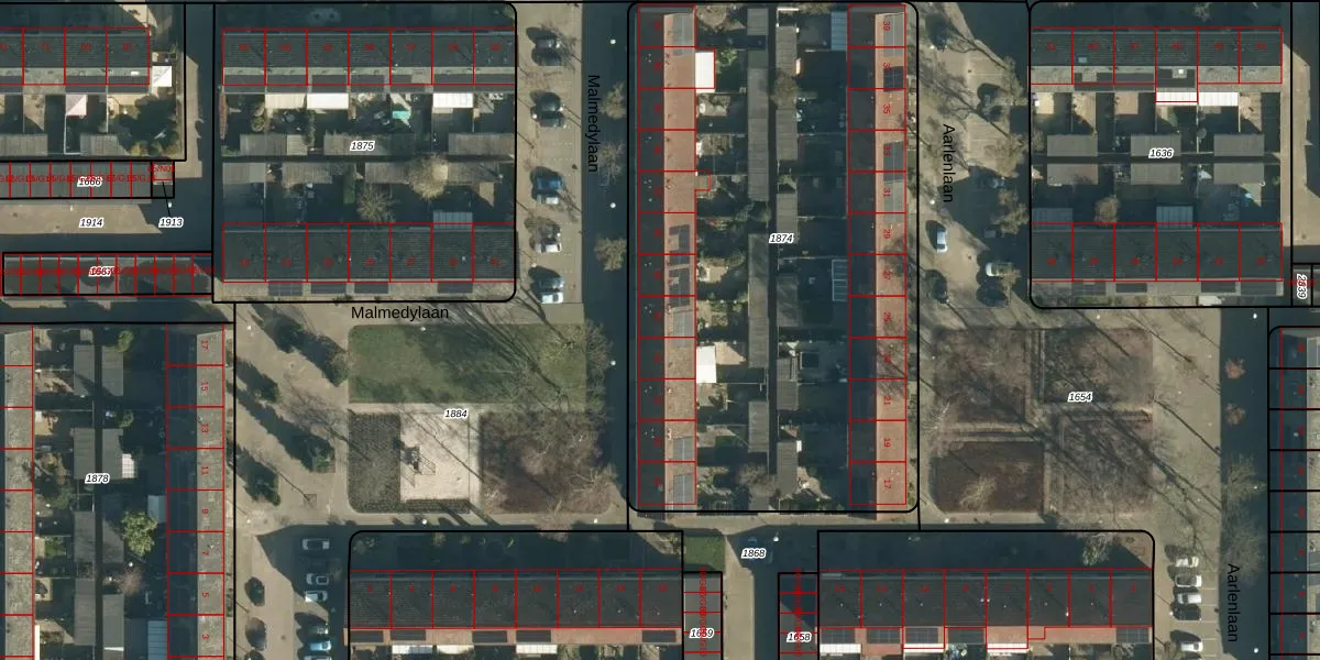 Het perceel waarop Malmedylaan 26 staat heeft een oppervlakte van 3409 m². Dit is een zeer groot perceel. De perceeloppervlakte wordt geregistreerd door het Kadaster. Gedetailleerde informatie over de maten van dit perceel kunt u vinden in het rapport Kadastrale kaart met maatvoering van Malmedylaan 26.