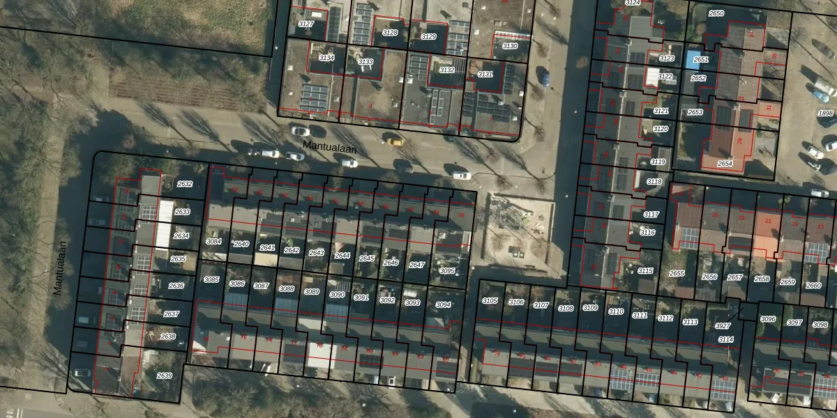 Mantualaan 32 is gelegen op kadastraal perceel WSL01C2646. Deze kadastrale aanduiding is uniek en wordt gebruikt door het Kadaster om eigendomsrechten en andere zakelijke rechten vast te leggen. Het perceel maakt onderdeel uit van de kadastrale gemeente Woensel.