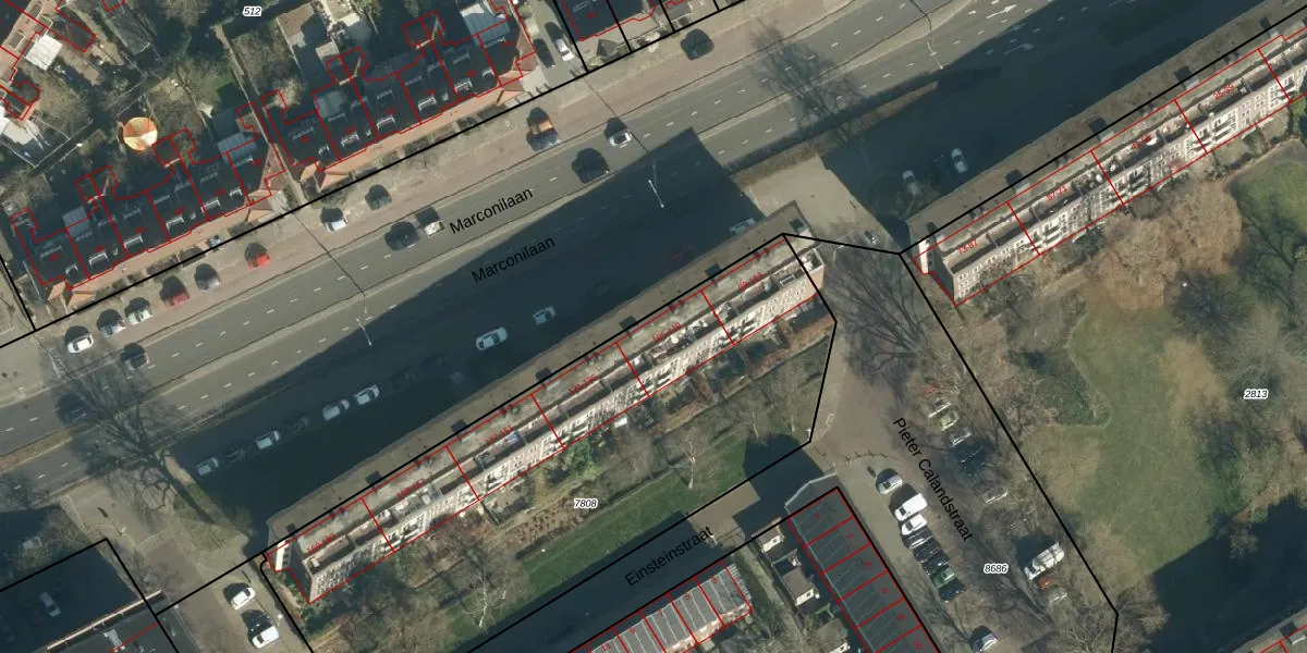 Marconilaan 107 is gelegen op kadastraal perceel WSL01G7808. Deze kadastrale aanduiding is uniek en wordt gebruikt door het Kadaster om eigendomsrechten en andere zakelijke rechten vast te leggen. Het perceel maakt onderdeel uit van de kadastrale gemeente Woensel.