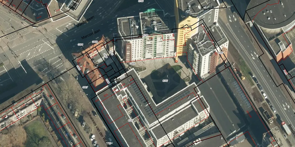 Marconilaan 15-18 is gelegen op kadastraal perceel WSL01G8755. Deze kadastrale aanduiding is uniek en wordt gebruikt door het Kadaster om eigendomsrechten en andere zakelijke rechten vast te leggen. Het perceel maakt onderdeel uit van de kadastrale gemeente Woensel.
