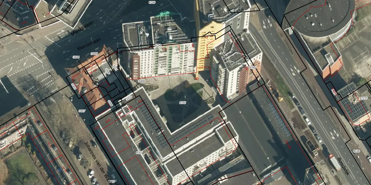 Marconilaan 15-31 is gelegen op kadastraal perceel WSL01G8755. Deze kadastrale aanduiding is uniek en wordt gebruikt door het Kadaster om eigendomsrechten en andere zakelijke rechten vast te leggen. Het perceel maakt onderdeel uit van de kadastrale gemeente Woensel.