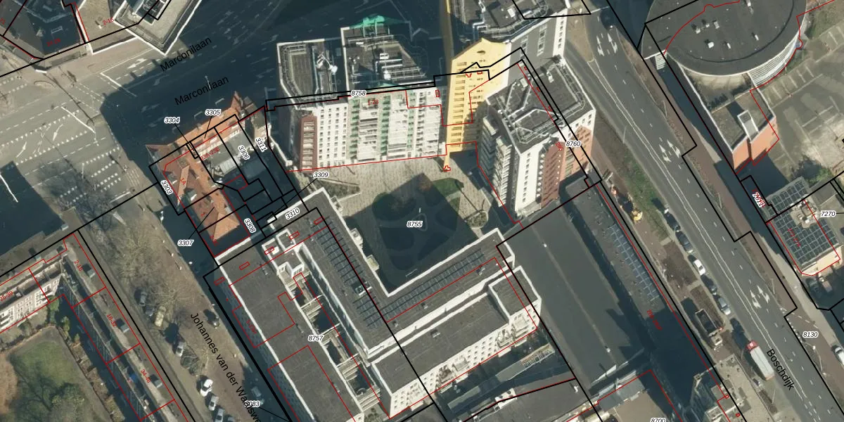Marconilaan 15-37 is gelegen op kadastraal perceel WSL01G8755. Deze kadastrale aanduiding is uniek en wordt gebruikt door het Kadaster om eigendomsrechten en andere zakelijke rechten vast te leggen. Het perceel maakt onderdeel uit van de kadastrale gemeente Woensel.