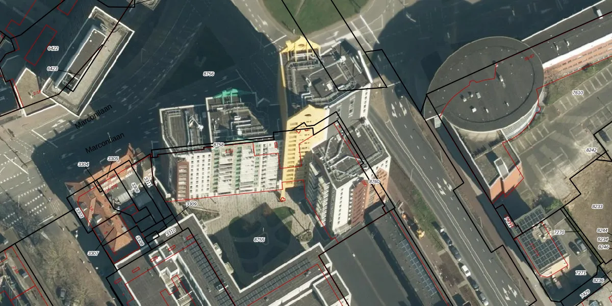 Marconilaan 23 is gelegen op kadastraal perceel WSL01G8755. Deze kadastrale aanduiding is uniek en wordt gebruikt door het Kadaster om eigendomsrechten en andere zakelijke rechten vast te leggen. Het perceel maakt onderdeel uit van de kadastrale gemeente Woensel.